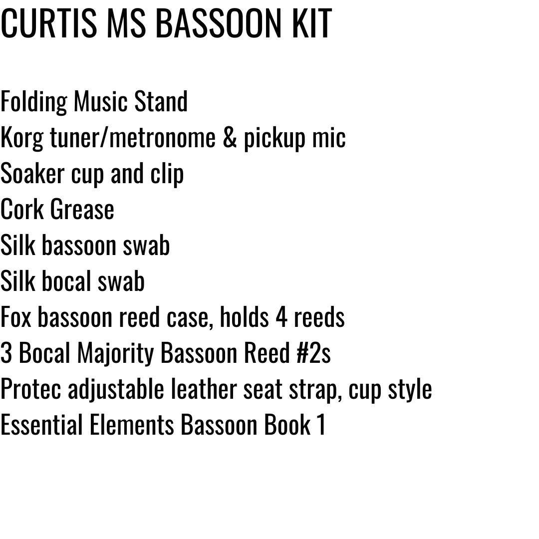 Beginner kits have been submitted by band directors from various schools. Click your school district, choose your school, then select your instrument. Kit contents are on file with the Bocal Majority staff. Kit contents are currently being updated to reflect the 2024-2025 school year selections. Additional charges or refunds may apply if the director has not updated the kit with us for the upcoming school year before a purchase for that school is made. Kits will be shipped to the shipping address provided.