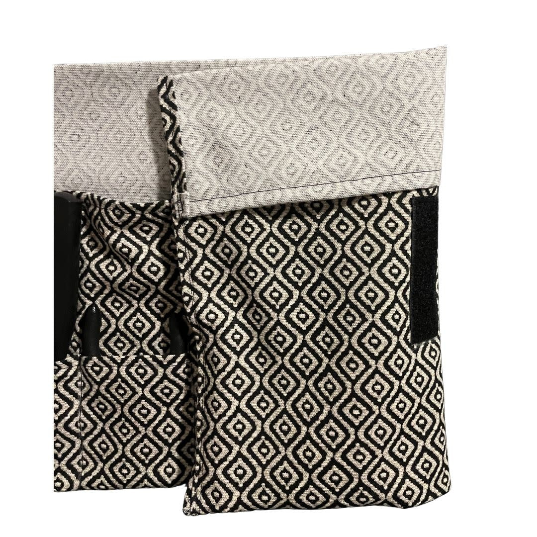 Handmade tool wallet that hangs over a metal Manhasset music stand to hold your tools and give you room on the stand for other accessories. Lovingly made by our founder, Jennifer, who is not a professional sewer. Tools not included.