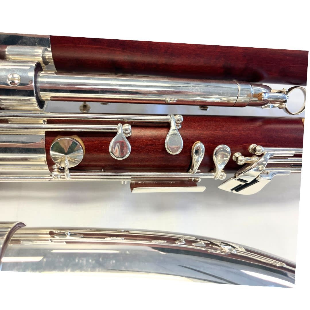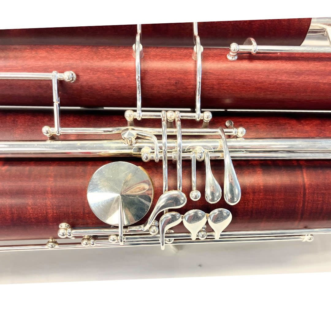C Contrabassoon, to low sub-contra BBb, 25 keys including High D and E key, double Ab, Eb and F# key, 2 bocals, leather pads, matte lacquer wood finish, silver-plated key work and trimmings plus case. We put in a lot of setup work on these contrabassoons to tune and voice them to be symphony ready. We have done this work on nearly 100 Amati contrabassoons so they play exceptionally well from us. See what all the excitement is about!