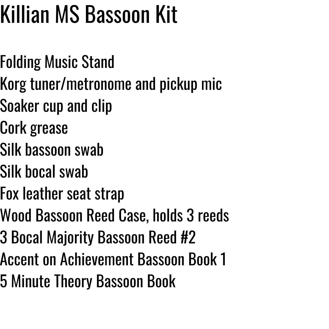 Beginner kits have been submitted by band directors from various schools. Click your school district, choose your school, then select your instrument. Kit contents are on file with the Bocal Majority staff. Kit contents are currently being updated to reflect the 2024-2025 school year selections. Additional charges or refunds may apply if the director has not updated the kit with us for the upcoming school year before a purchase for that school is made. Kits will be shipped to the shipping address provided.