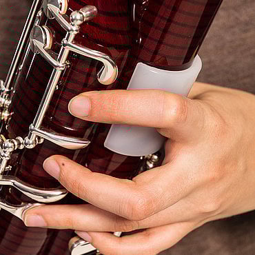 Innovative accessory for bassoon to add support for the left hand. Enables mobility for the left thumb and index finger on the instrument. The My Grip does not require any glue, is easy to install, remove and clean.