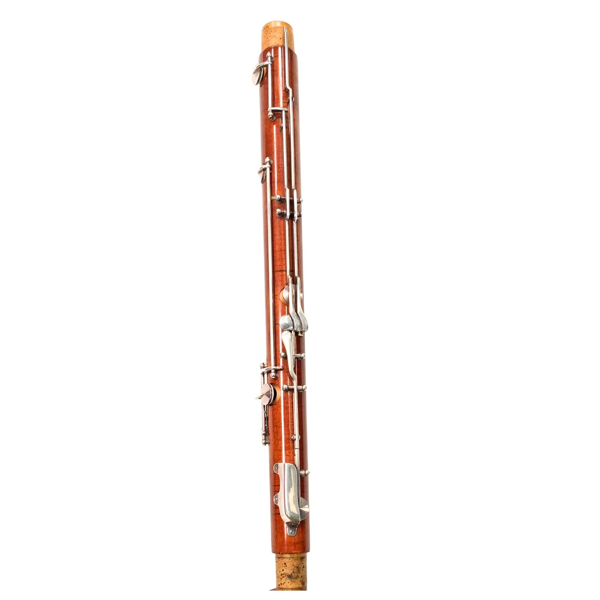 This is a used Fox 660 wooden bassoon made in 2009. This bassoon is in great playing condition and in good cosmetic condition. It comes with two Fox bocals, a standard Bonna case, a seat strap, cork grease, swab, and crutch. We go through each bassoon to ensure that it is in good playing condition before shipping. *although you may see the teal colored Bonna case in the picture, we have put this bassoon into a different case now for sale.