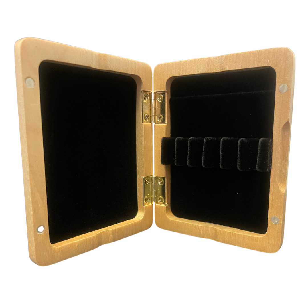 A sturdy reed case that holds 6 reeds and has a beautiful wooden finish.